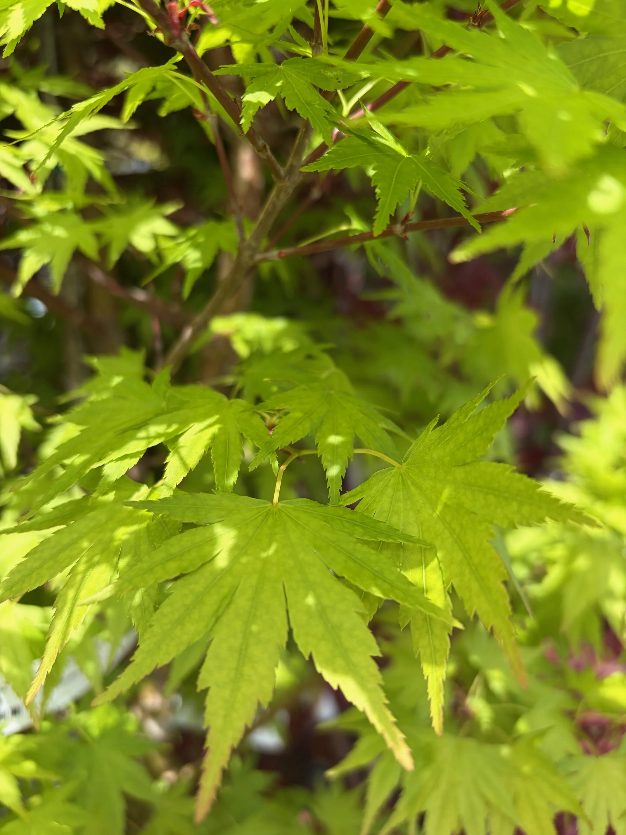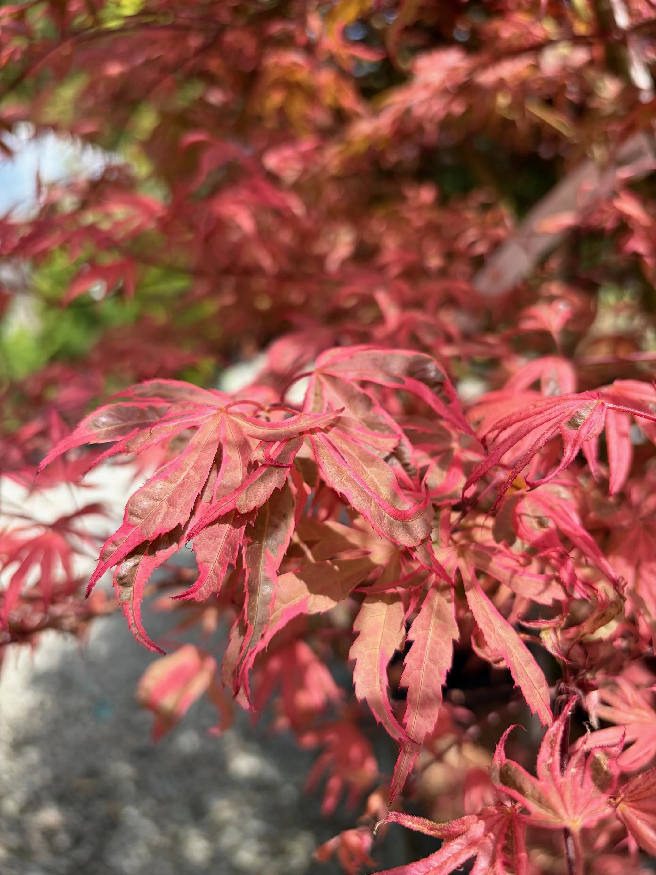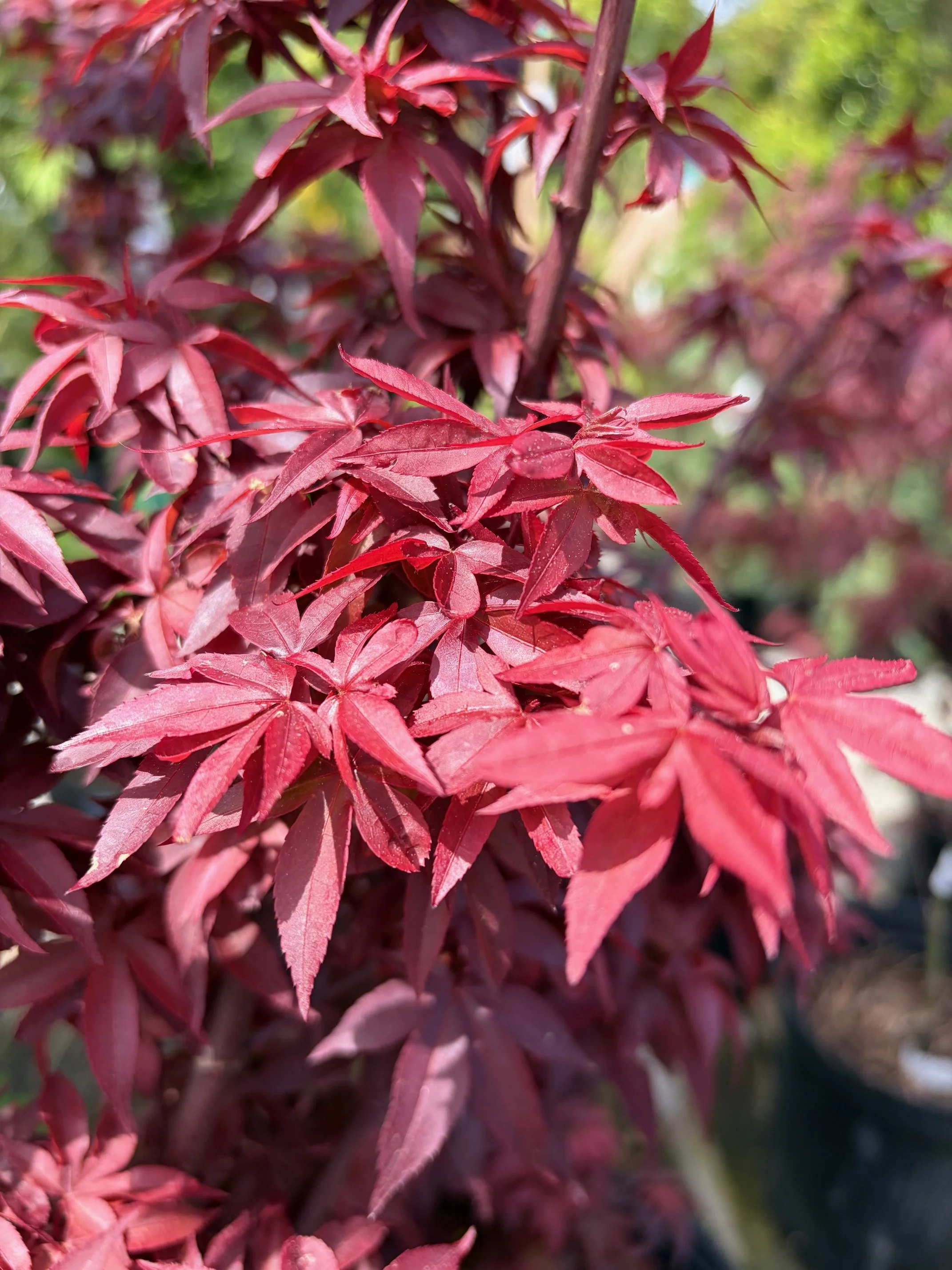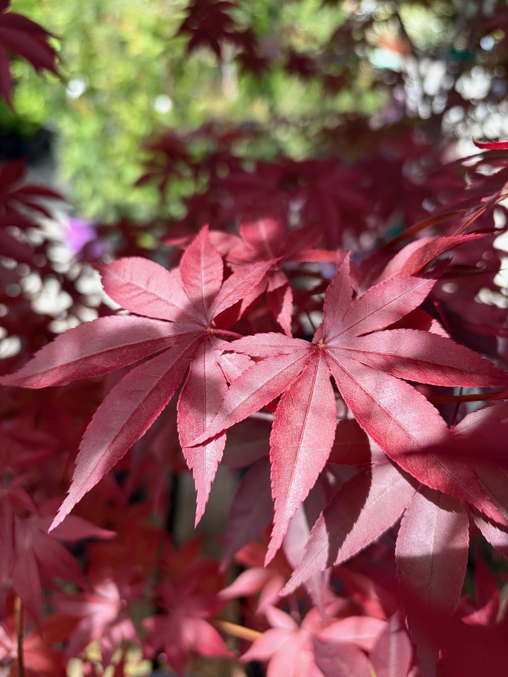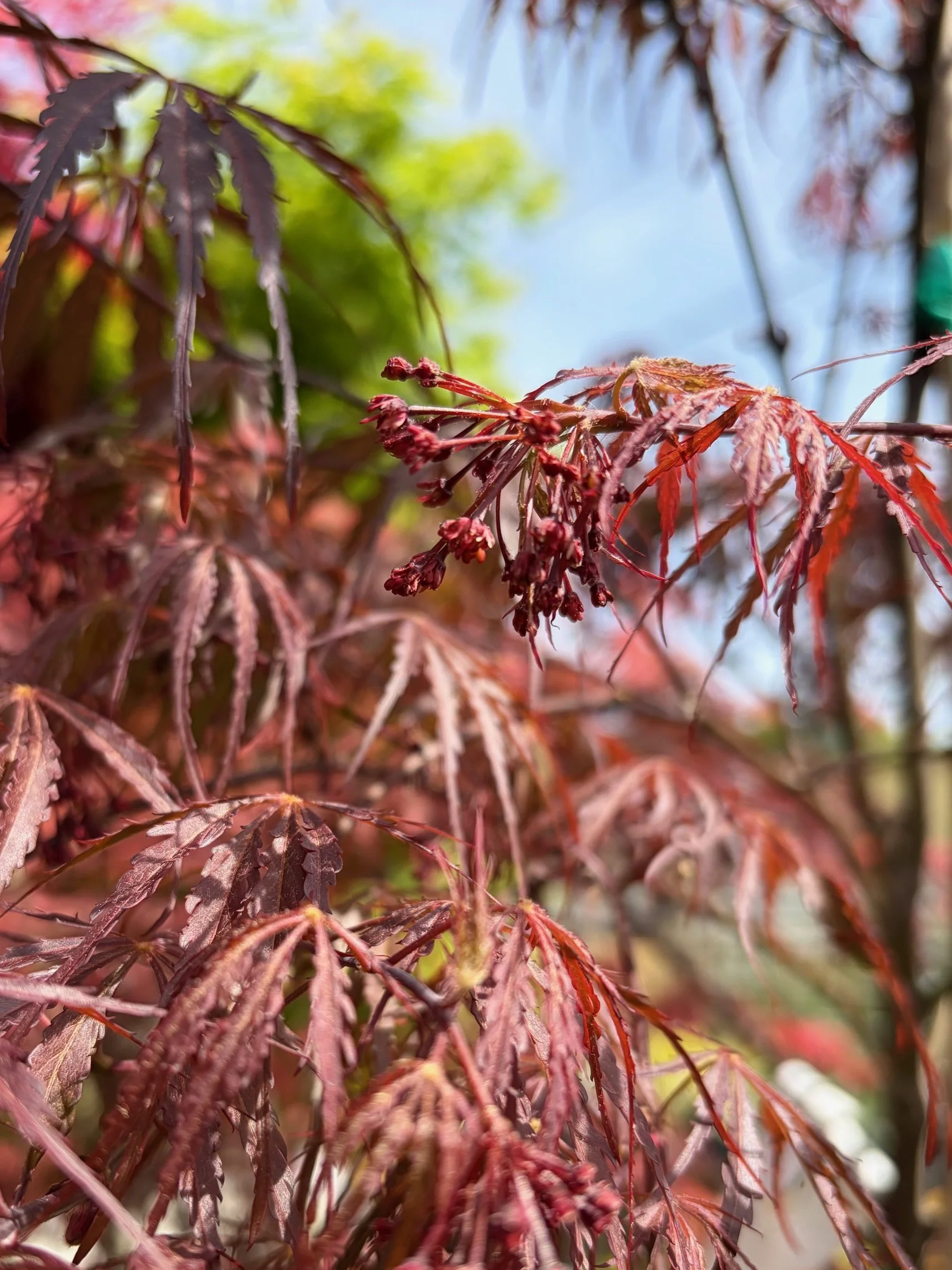 ‘Tamukeyama’ is one of the most reliable red laceleaf varieties, known for its durability and long-lasting color. Its cascading branches are covered in deep crimson leaves that turn bright scarlet in fall. It’s a tried-and-true favorite for adding graceful structure and rich color.